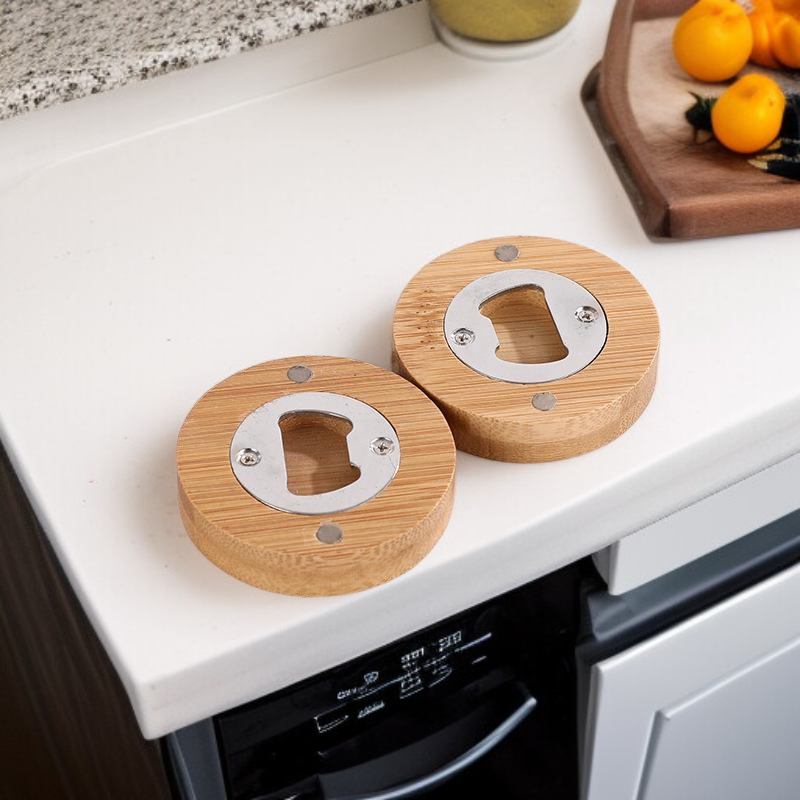 家庭用携帯磁気ボトルオープナー 竹製ロゴカスタム可