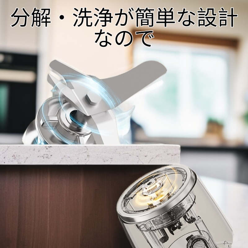 ● 強力モーター搭載で食材を素早く均一にカット&ミキシング。健康的なスムージーや新鮮なジュースがいつでも楽しめます。
